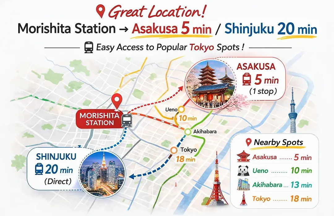 Spacious Tokyo Apartment For 6-8 Guests!! 1 Min To Morisita Station , Direct To Shinjuku Review